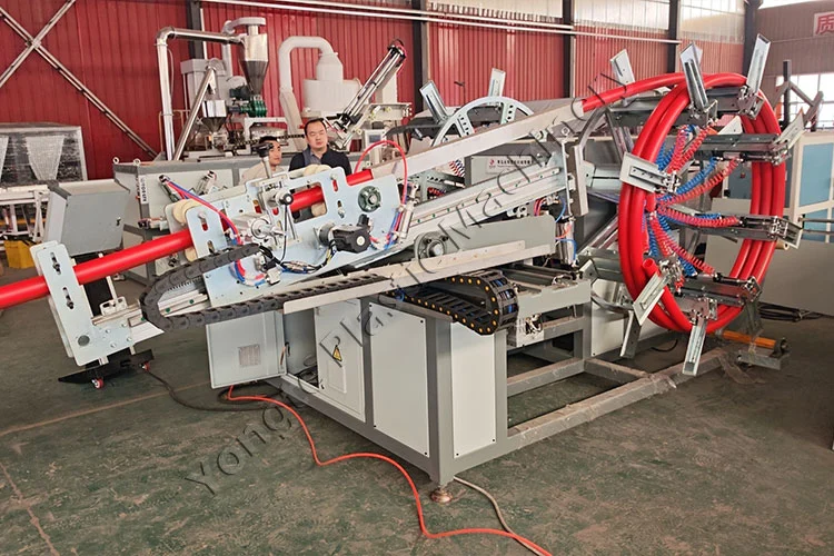 Во 2025 година, ние успешно испорачавме два прилагодени комплети автоматски машини за намотување PE цевки на водечко аргентинско претпријатие за обработка на пластика. На клиентот му беа потребни високоефикасни решенија за намотување за да одговараат на нивните новопроширени линии за истиснување на PE цевки со голема брзина. Нарачката се состоеше од две специјализирани единици: една машина за автоматско намотување со двојна станица оптимизирана за цевки со дијаметар од 15-32 mm и друг модел со висок капацитет дизајниран за дијаметри од 20-63 mm. Овие машини беспрекорно се интегрираат со линиите за истиснување на цевки од PE со голема брзина за автоматски да ги намотаат цевките во униформни ролни. Опремена со систем за автоматско броење на должина, машината активира автоматско сечење и пренос на станица откако ќе се достигне целната должина. Истовремено го зацврстува готовиот ролна и активира аларм за пакување, обезбедувајќи целосно автоматизирано решение за намотување. Ригорозните фабрички тестирања пред пратката обезбедија стабилна работа на лице место по испораката.