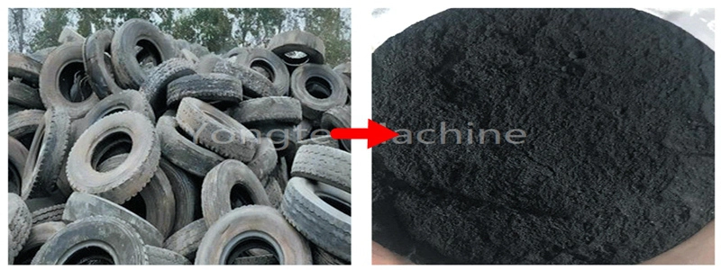 Финален гумен прав направен од оваа машина за рециклирање гумени гуми: 20-40 mesh rubber powder made by rubber tyre recycling machine
